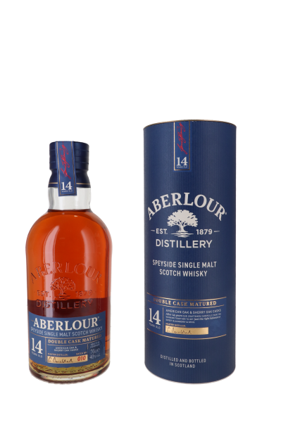 Fidèle à la signature des Single Malts Aberlour, Aberlour 14 ans est issu d’une double maturation en fûts de chêne ayant contenu du Bourbon et du Sherry, lui conférant ainsi le juste équilibre entre des saveurs fruitées et épicées auxquelles viennent s’ajouter une dominante de cassis et de miel.