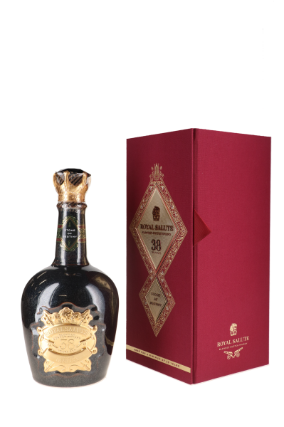 Le Chivas 38 ans Royal Salute Stone of Destiny est un blend issu de whiskies exceptionnels, âgés de 38 ans au minimum. La bouteille est faite à la main et ressemble à de la pierre de granit. Le blason, en or 24 carats, s’inspire des poignées des anciennes épées, qui évoquent la bravoure des guerriers écossais.