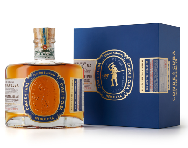 Notre meilleur rhum extra añejo, Édition Suprême Media Luna, présenté dans une bouteille exclusive en forme de "C" de Cuba, Conde de Cuba et demi-lune. Un rhum qui a été vieilli selon le système de solera.