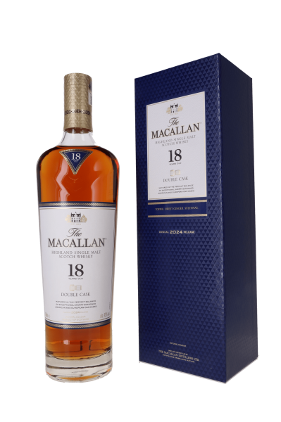 The Macallan Double Cask 18 Years Old, un whisky single malt parfaitement équilibré, vieilli pendant 18 ans dans des fûts de chêne américain et européen assaisonnés de sherry.