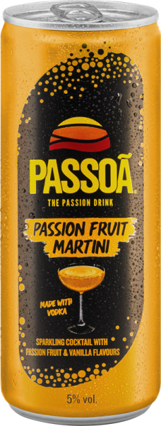Passoã Passion Fruit Martini. Inspiré du populaire Pornstar Martini, avec des saveurs de fruit de la passion, de vanille et de citron vert. Préparé avec de la vodka. Rafraîchissant et plein de saveur.