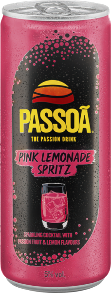 Passoã Pink Lemonade Spritz. Plein de fruit de la passion et de citron-citron vert frais, cette boisson pétillante et sucrée offre le parfait équilibre entre fruité et fraîcheur.